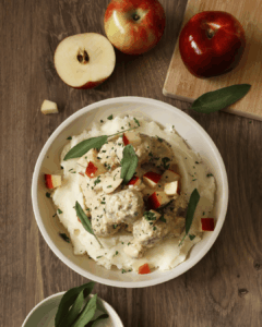 Meatball goals achieved! Juicy apple pork meatballs in a dreamy Dijon cream sauce. Because life’s too short for boring dinners. Who’s ready to dive in?